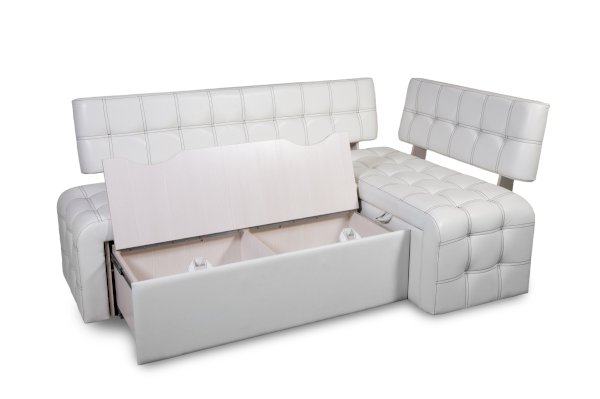 Кухонный диван Прага декорирован двойной отстрочкой в виде квадратов, в контраст с основным цветом обивки.