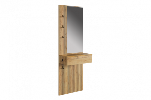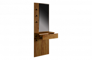 Принт, имитирующий вертикальную фрезеровку, придает зеркалу уникальный и современный вид, добавляя текстуру и глубину. Материал каркаса – ЛДСП, что обеспечивает прочность и долговечность, а также легкость в уходе.