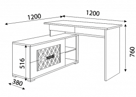 • Два компактных выкатных ящика по столешницей. Два глубоких ящика в тумбе и ниша со съемной полкой. При необходимости, полку можно убрать и в нише разместить системный блок компьютера.