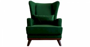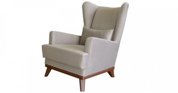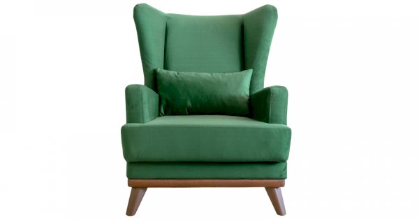 Высокая спинка с наклоном и мягкие подлокотники обеспечивают удобную посадку, дополнительный комфорт создает декоративная подушка. Царга кресла обтянута искусственной кожей в цвет опорам.