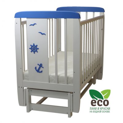 Кроватка декорирована деталями морской тематики.