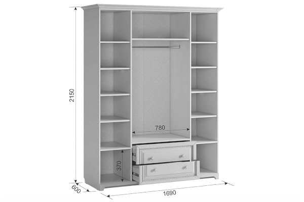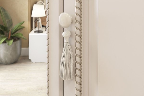 Нет ничего лучше, чем сочетание красоты и практичности. 4-створчатый шкаф «Белла» тому доказательство. Фасады шкафа выполнены в нежном оттенке джелато, дверцы украшены фрезеровкой, а ручки – декоративными кистями. Центральный отсек шкафа оснащен круглой штангой для одежды, а боковые – полками. Выдвижные ящики прекрасно подойдут для хранения вещей.